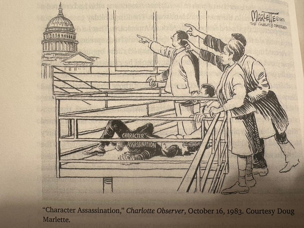On MLK Day, I recommend a book not so much about King himself, but about the struggle for the King Holiday—Daniel Fleming’s Living the Dream. The first proposal for a King Holiday emerged days after his death, but it didn’t become federal law until 1983 and the last state (South Carolina) didn’t recognize MLK Day as a state holiday until 2000. Flemming tells us how we got there and why it matters. Somewhere along the way, Fleming includes this political cartoon from Doug Marlette5, then with the Charlotte Observer. A good one to remember on a day that is likely to bring out some beautiful and, unfortunately, some truly terrible takes on King and his legacy.